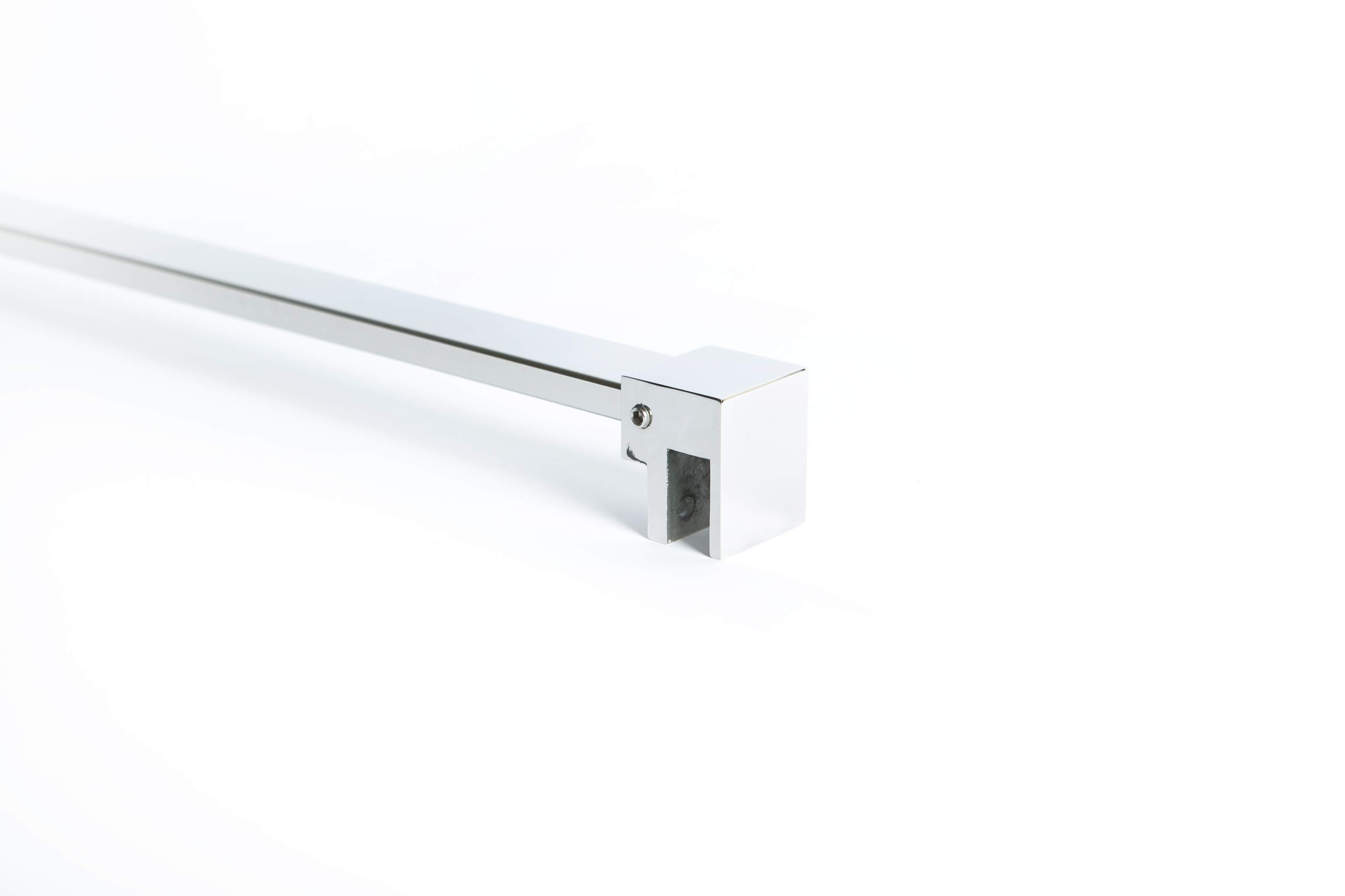 Glasväggen fästs på väggen och till golvet med hjälp av en U-profil av aluminium och ett teleskoprör. U-profilen på sidan fästs på väggen med skruvar och den nedre limmas med dubbelsidig tejp, glaset hålls inuti U-profilen tack vare silikon.