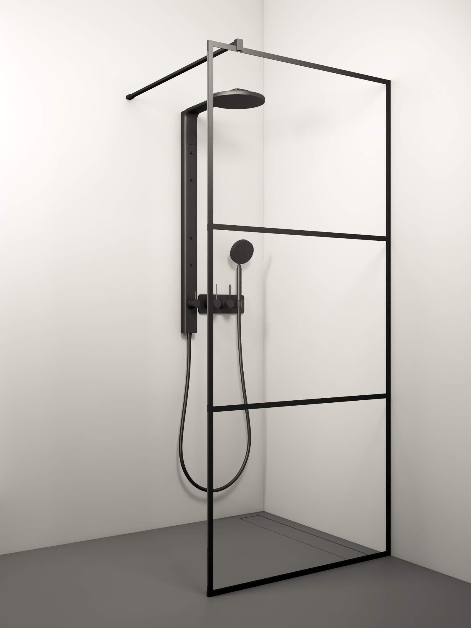 Kaira Black Deep är en duschvägg av dyrare klass med svart design, som har till skillnad från billigare duschväggar har ett något exklusivare teleskoprör. Alla beslag är svarta och glasets kanter är svartfärgade och glaset har ett svart mönster tryckt på det. Den svarta randen är 2 cm tjock.