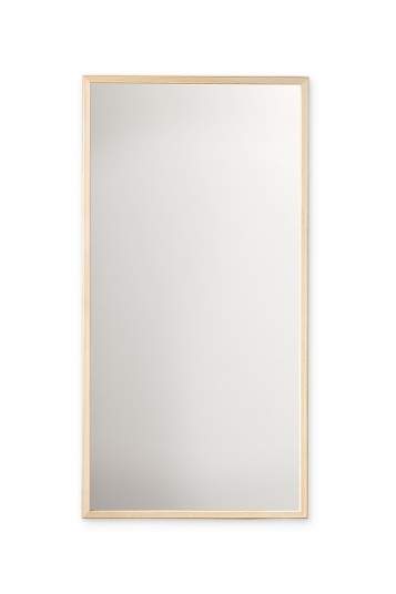 Först och främst borrar man hål i väggen och skruvar i L-krokarna med gängan. Då hänger man spegeln på krokarna.